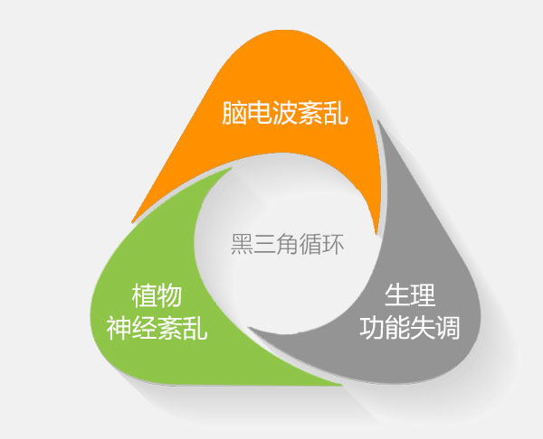 精神压力过大、生理功能失调、脑电波紊乱,形成一组首尾相连、相互促进的黑三角循环。