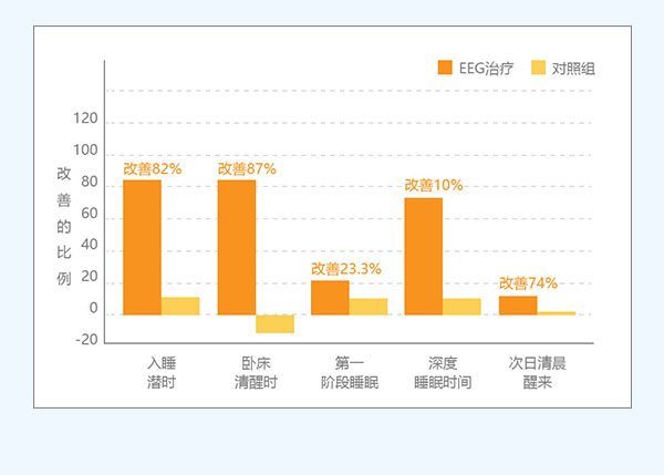 针对失眠症,仪器向大脑中枢神经系统传导经过特殊设计的生物电信号,调节异常脑活动,达到 “ δ状态”,更深层次的控制和改善脑电波的异常发射和频次紊乱,刺激多种神经递质分泌(如5-HT、γ-氨基丁酸、内啡肽等),从而达到治疗目的。